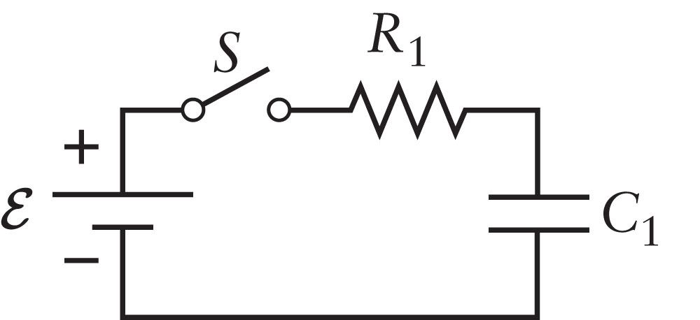 If the switch in the circuit is closed for a very long time, what is the charge on the capacitor? (R1 = 1274 , C1 = 70 F, = 6.3 V)